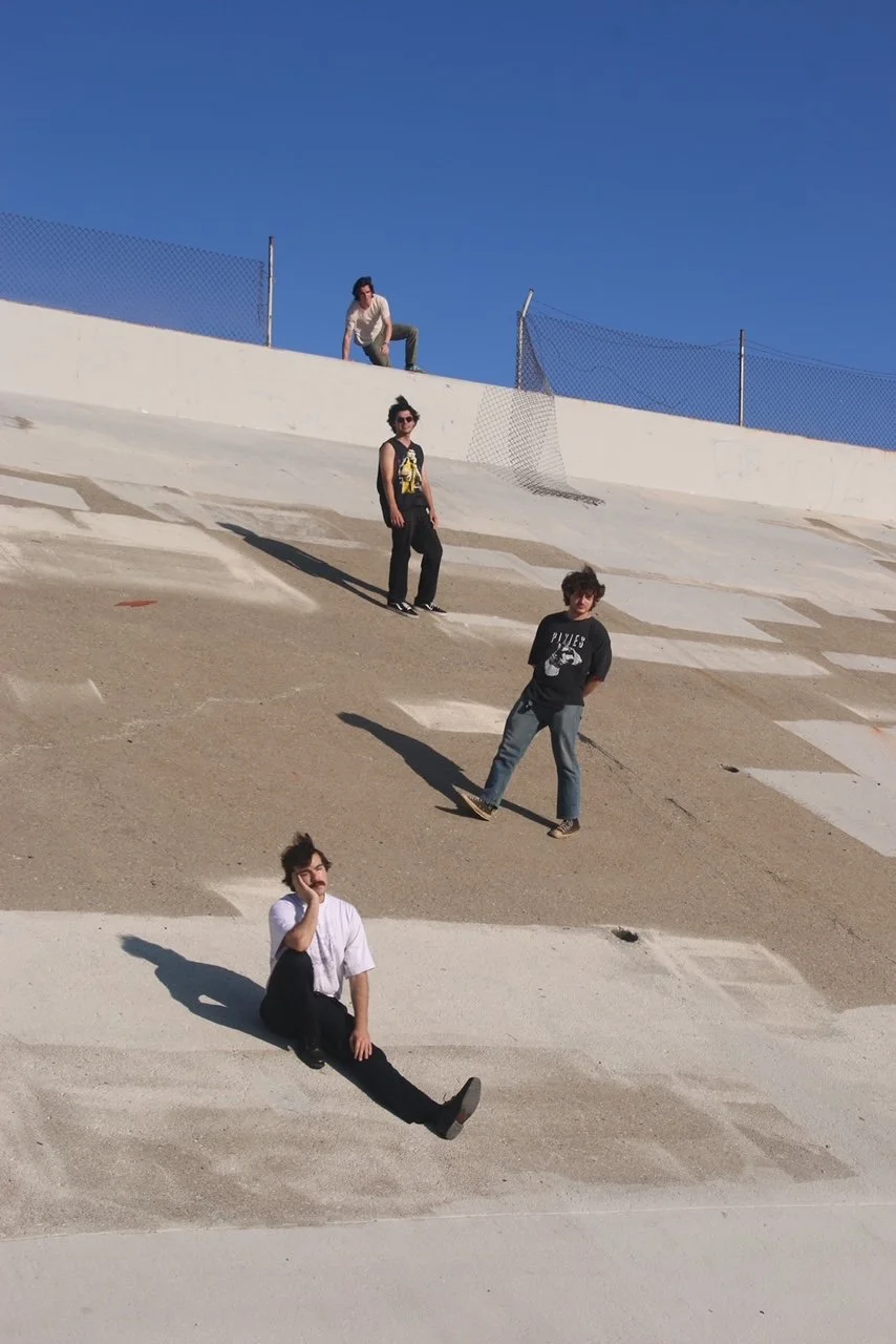 The band, consisting of Sean Lissner (guitar/singing), Jaden Amjadi (bass/screaming), Evan Landi (drums), and Sam Schlesinger (guitar), blends ethereal synthesizers and fuzzed-out guitars to deliver soft-yet-abrasive anthems for sitting in traffic on the 101.